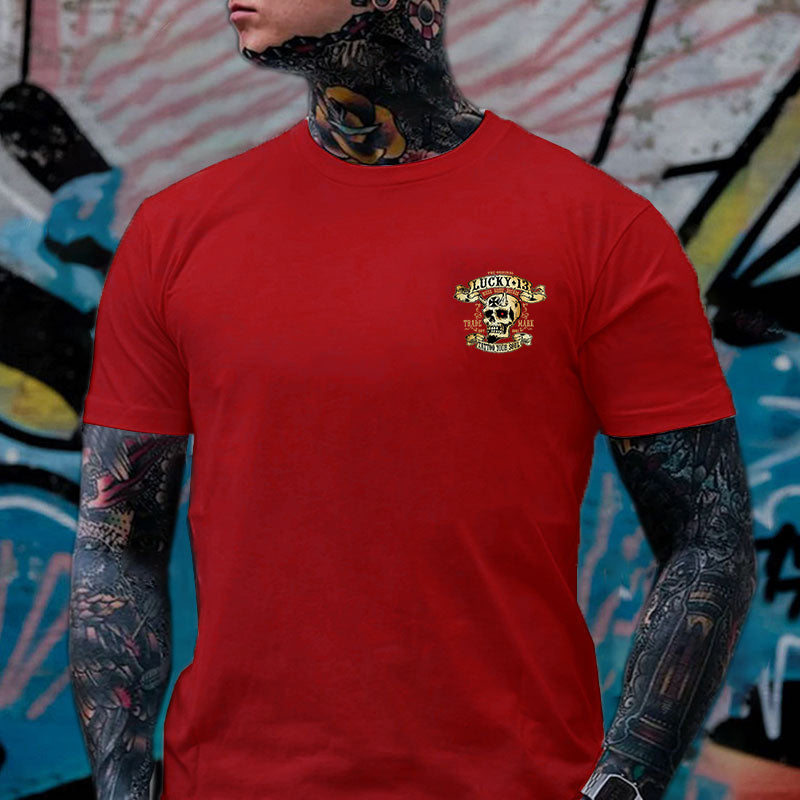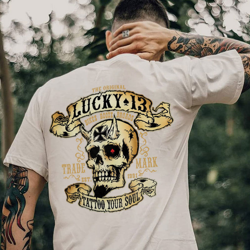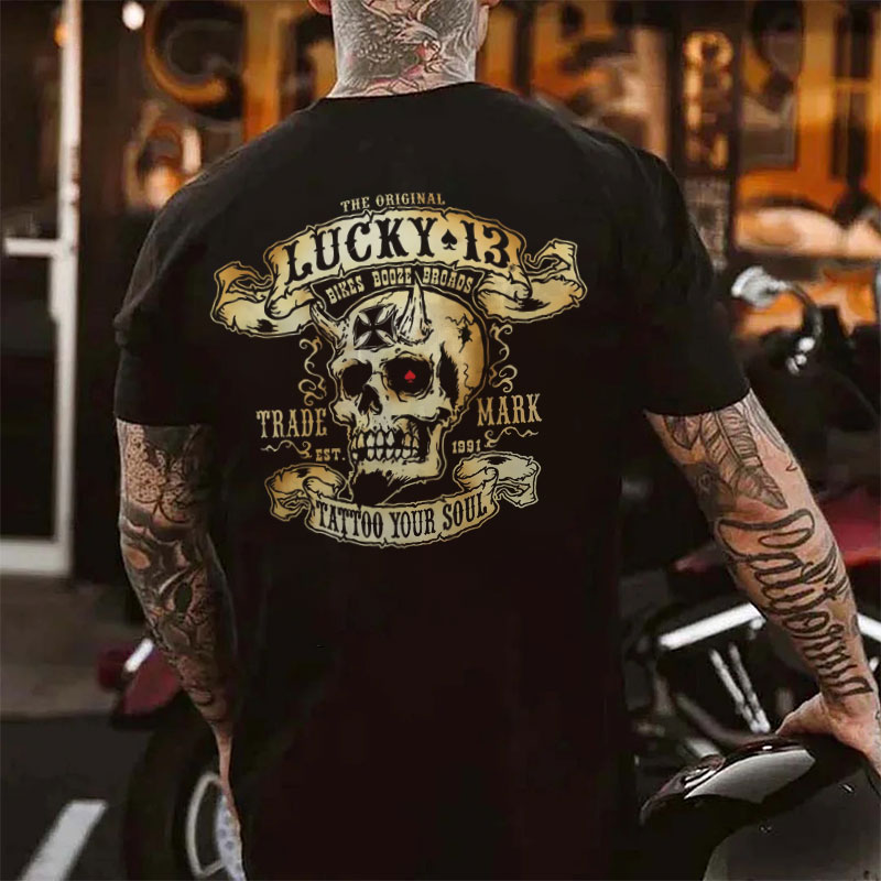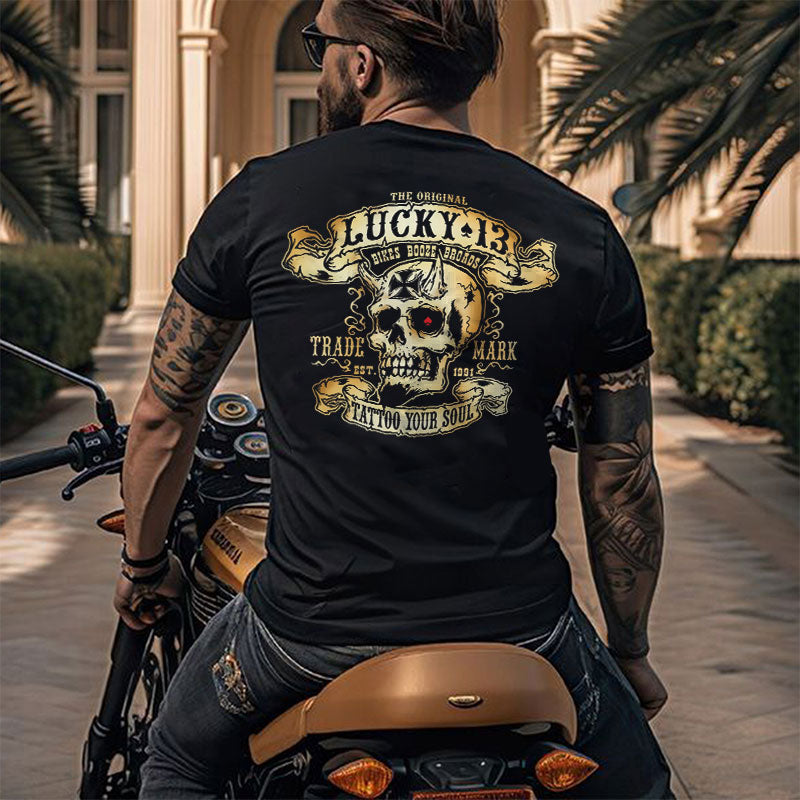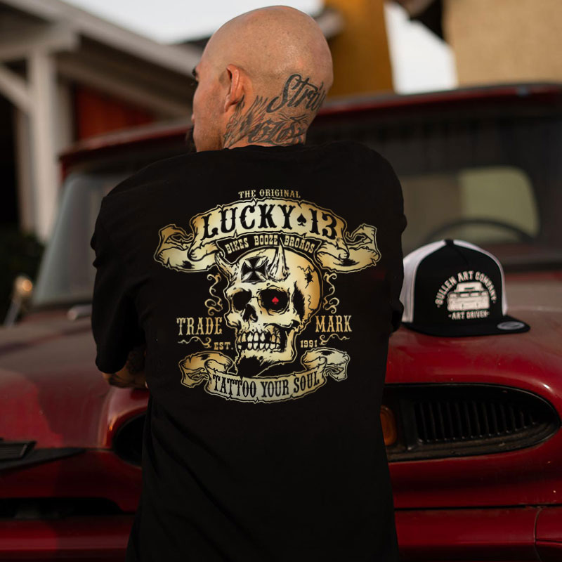 LUCKY THIRTEEN Skull Black Print T-shirt