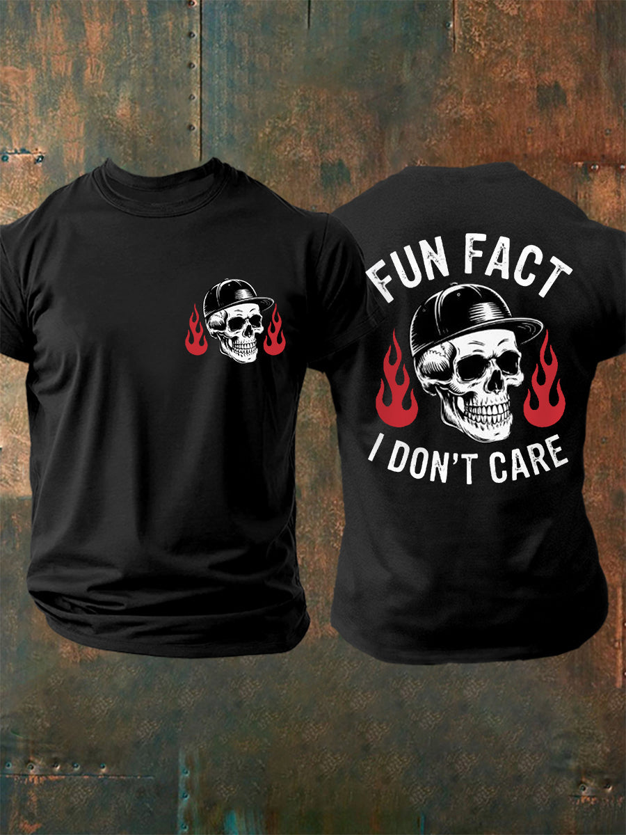 Men's Fun Fact I Don't Care Funny Attitude Skeleton Quote Tee