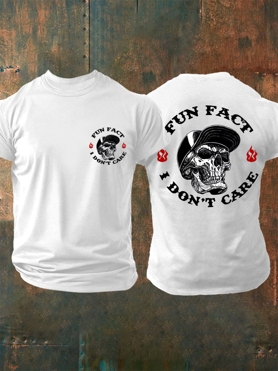 Men's Fun Fact I Don't Care Funny Skeleton Quote Attitude Tee