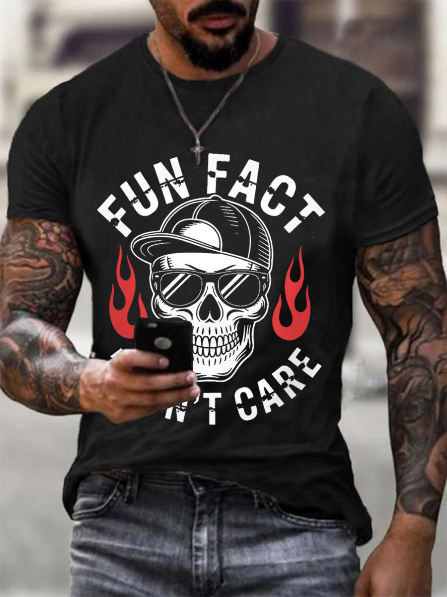 Men's Fun Fact I Don't Care Funny Skeleton Quote Attitude Tee
