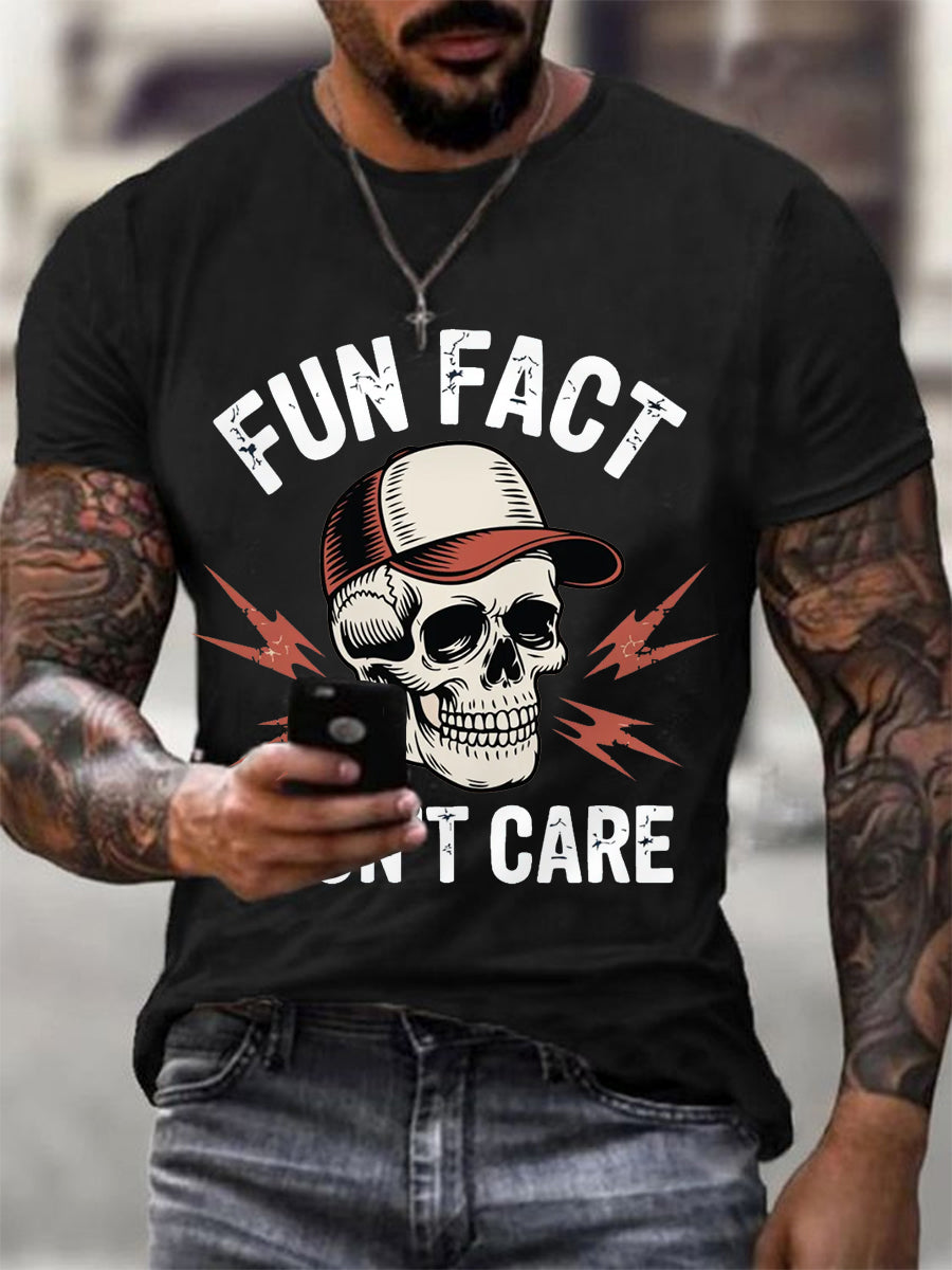 Men's Fun Fact I Don't Care Funny Skeleton Quote Attitude Tee