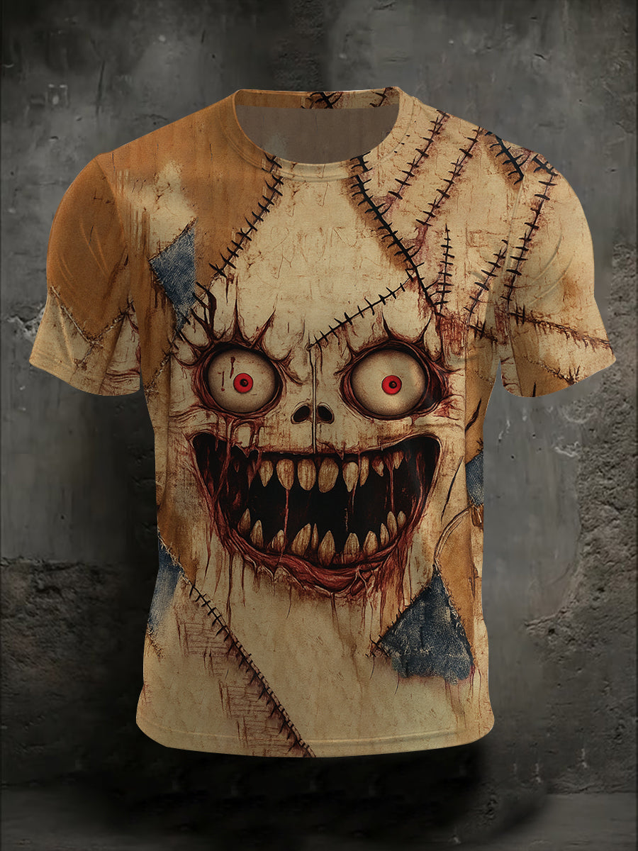 Men's Halloween Horror Bloody Face Stitching Print Casual Tee